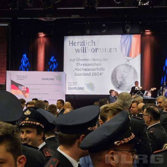 Am vergangenen Dienstagabend fand im Lokschuppen in Dillingen die Verleihung des Ehrenzeichens "Hochwasserhilfe Saarland 2024" an die Helferinnen und Helfer aus dem Landkreis Saarlouis statt. Begleitet von der Big Band der saarländischen Polizei bedankten sich Landrat Patrick Lauer, der Bürgermeister der Stadt Dillingen Franz-Josef Berg, der saarländische Innenminister Reinhold Jost und die saarländische Umweltministerin Petra Berg bei den rund 1.600 anwesenden Einsatzkräften für ihre herausragenden Leistungen und ihr Engagement während des diesjährigen Pfingsthochwassers. In allen Dankesworten wurde besonders deutlich, wie wichtig Zusammenhalt und Solidarität in herausfordernden Zeiten wie diesen sind und dass dieser Einsatz dies eindrucksvoll unter Beweis gestellt hat. &nb ... Mehr erfahren
